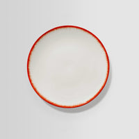 The edges of the fine plates feature a ?d‚grad‚?, painted by hand in several layers to create a meticulous interplay of lines. This craftsmanship makes each plate unique and enables a wide array of combinations. There are six variations of d‚grad‚ in black, from very fine to almost completely covering the object. In addition to the black series, there is also a selection of plates with red paint.