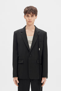 Thor Blazer - Noir - Revers en pointe - Fermeture à boutons - Épaules rembourrées - Ruban gros-grain signature amovible - Poche poitrine - Poches latérales à rabat - Épaules tombantes - Poignets boutonnés - Fente arrière - Fermeture supplémentaire à bouton torsadé - 100% laine vierge - Made in Italy