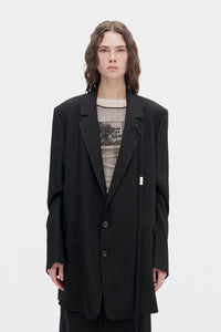 Blazer Tailoré Agnes High Comfort - Noir - Calicot de Viscose - Col à Revers - Épaules Rembourrées - Ruban Grosgrain Signature Amovible - Fermeture à Bouton - Poche Poitrine - Poches Latérales à Rabat - Épaules Tombantes - Poignets Boutonnés - Fente au Dos - Coupe Oversize - 100% Viscose - Made in Italy