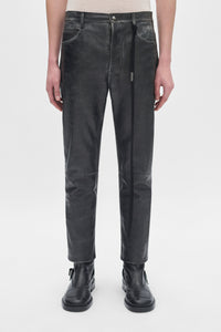 Pantaloni Dael 5 Tasche - Nero - Pelle Distressed - Fori per Cintura - Nastro Grosgrain Rimovibile con Firma - Chiusura con Bottoni a Pressione e Zip - 5 Tasche - Gamba Affusolata - 100% Pelle di Vitello - Made in Italy