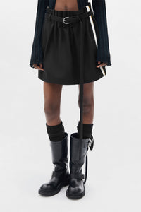 Minigonna a pieghe Haga - Nero - 100% Cotone - Vita con cintura - Banda laterale a contrasto - Design a pieghe - Lunghezza mini - Made in Italy