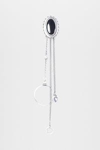 Spilla Ekin Cabochon con Ciondoli - Argento Antico - 100% Ottone - Design Cabochon Ovale - Dettagli con Catena e Ciondolo - Made in Italy