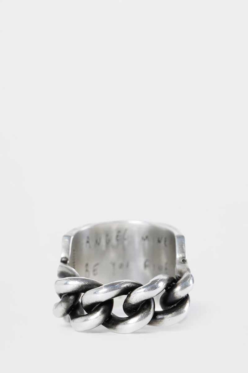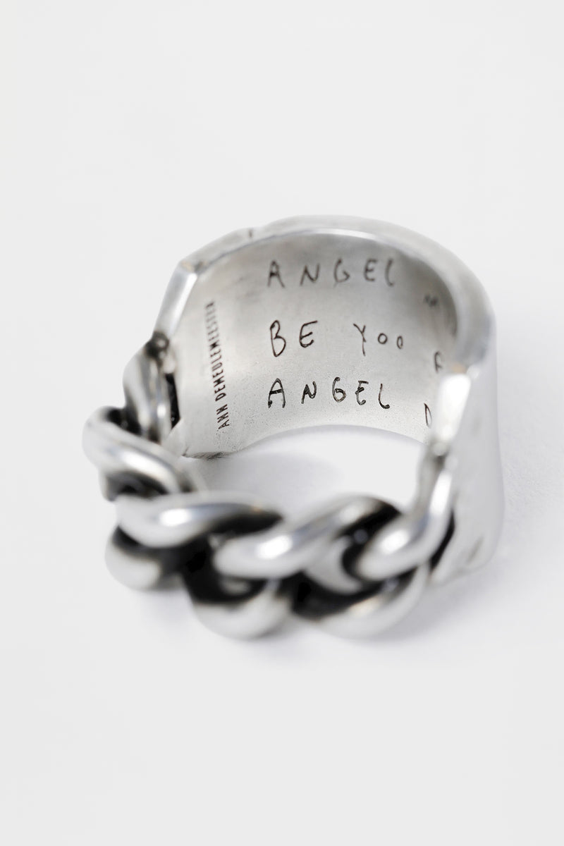 Anello a catena Ire Quote - Argento antico - Logo inciso e ''Angelo mio, sii tu bene'' - Fatto a mano - 100% Argento - Made in Italy