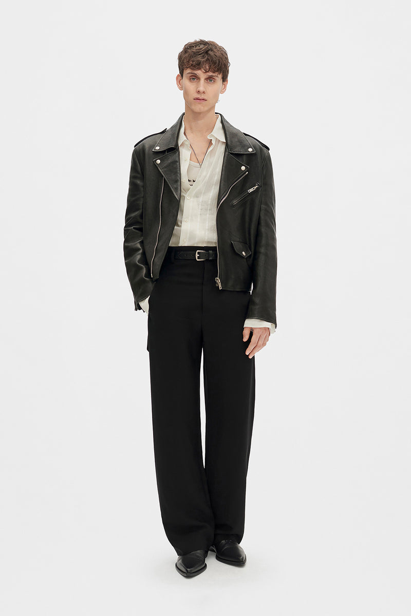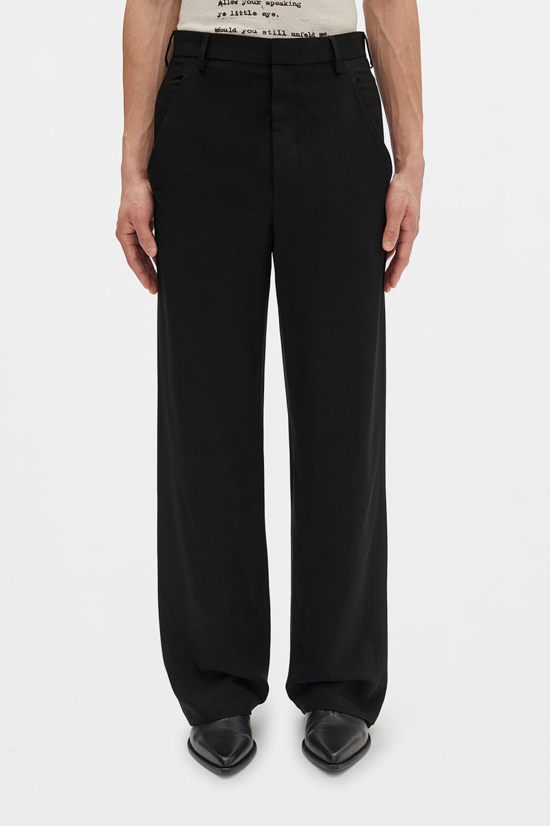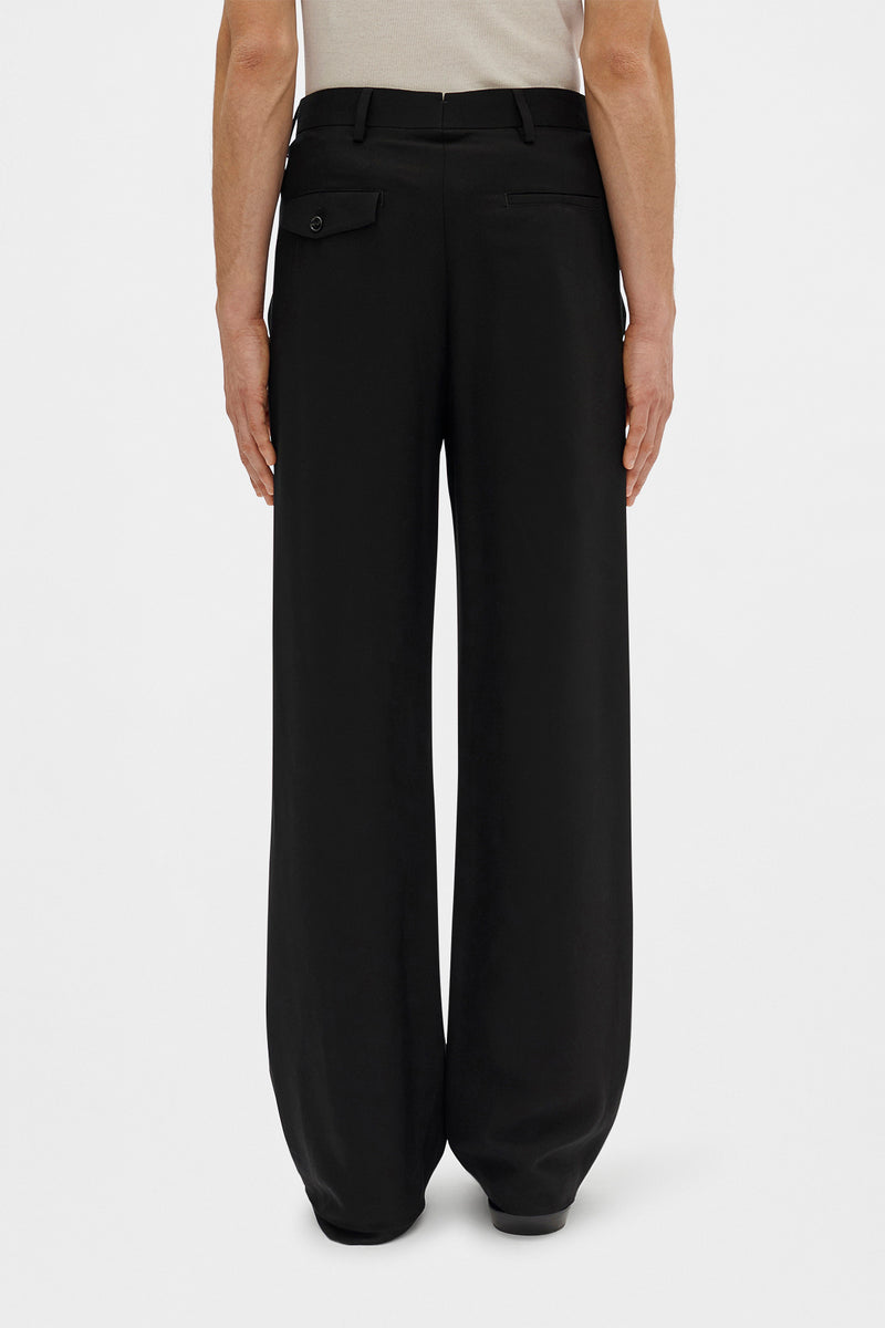 Pantaloni Leon Comfort Fit - Nero - Calicò di Viscosa - Passanti per Cintura - Nastro Grosgrain Rimovibile con Firma - Chiusura con Gancio e Zip - Tasche Laterali - Tasche Posteriori Asimmetriche - Vestibilità dritta - 100% Viscosa - Made in Italy