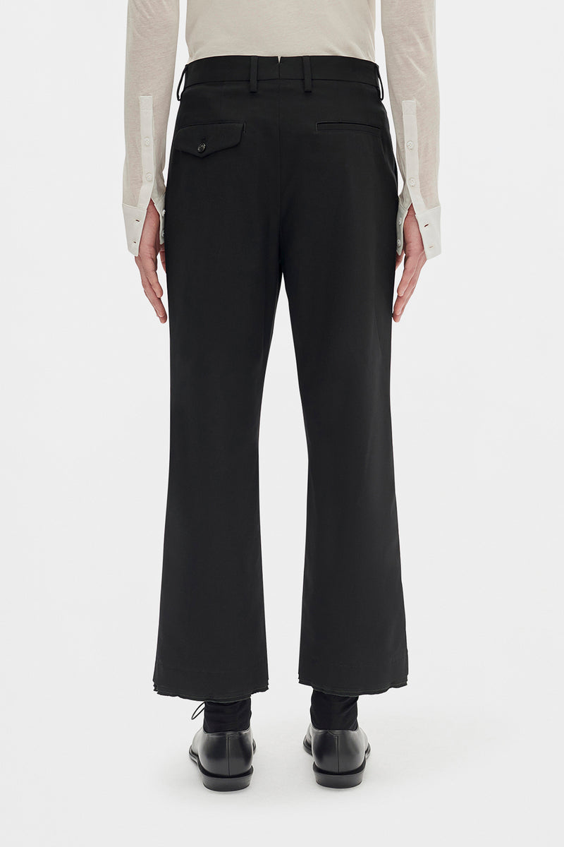 Ysten corto Pantaloni - Nero - Twill di Cotone - Fori per Cintura - Chiusura con Gancio e Zip - Tasche Laterali - Tasche Posteriori Asimmetriche - Orli a Strati con Bordi Grezzi - Vestibilità corto - 100% Cotone - Made in Italy