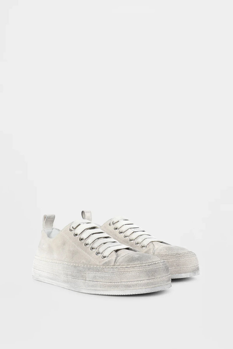 Nonobasse Sneakers - Gesso - Effetto Usato - Chiusura con Lacci - Suola in Gomma Coperta e Punta - 100% Pelle di Vitello - Made in Italy