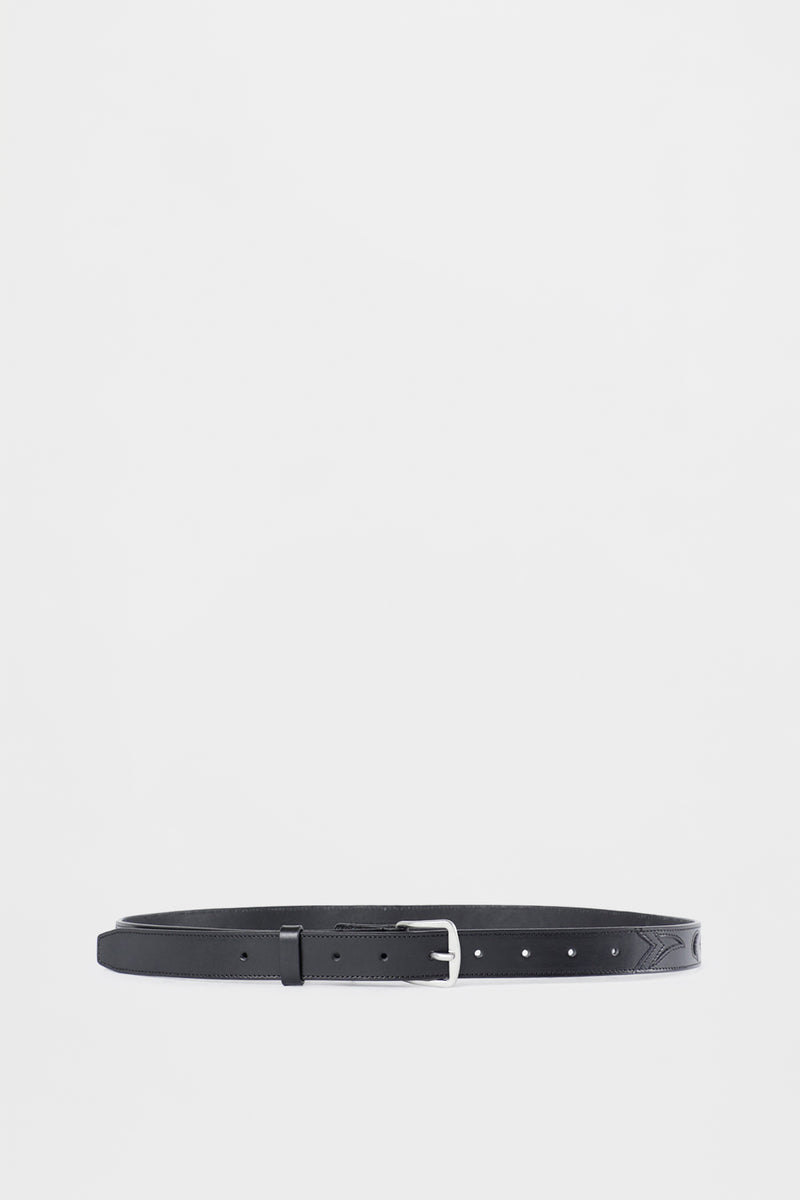 Cintura Oskara - Nera - Pelle di vitello oliata - Stratificata - Dettagli di cucitura western ritagliati - Fibbia in metallo regolabile - 100% pelle di vitello - Made in Italy