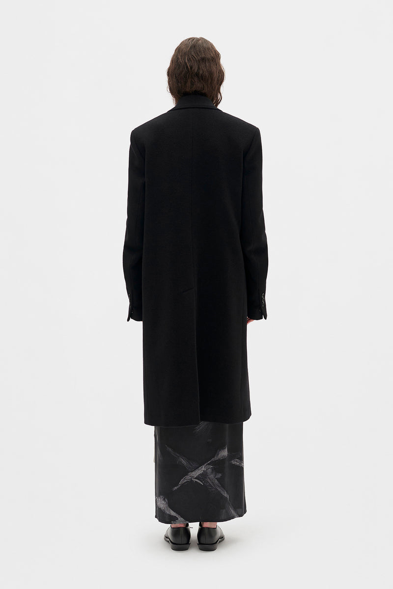 Viv High Comfort sartoriale Cappotto - Nero - Feltro di Lana - Con Revers Colletti - Spalle Imbottite - Nastro in Grosgrain Rimovibile - Tasca sul Petto - Tasche Laterali con Patta - Spalle Cadenti - Maniche Rilassate - Spacco Posteriore - Vestibilità Oversize - 90% Lana Vergine, 10% Cashmere - Made in Italy