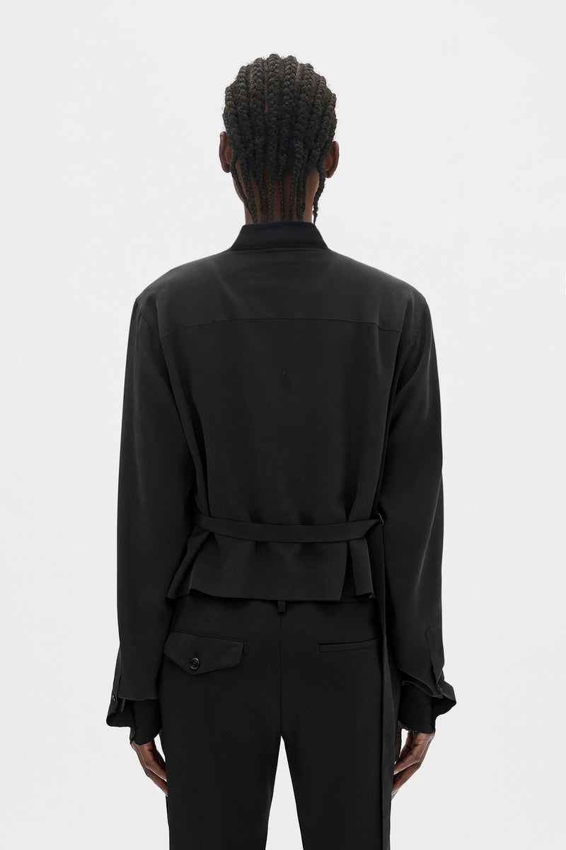 Camicia Cargo Karita - Nero - Crêpe de Chine Enzymato - Stand Colletti - Chiusura con Bottoni - Tasche Frontali con Patta - Spalle Scese - Maniche Lunghe - Polsini Abbottonati - Cinturino in Grosgrain con Fibbia sul Retro - Orlo corto - Vestibilità Comoda - 100% Seta - Made in Italy