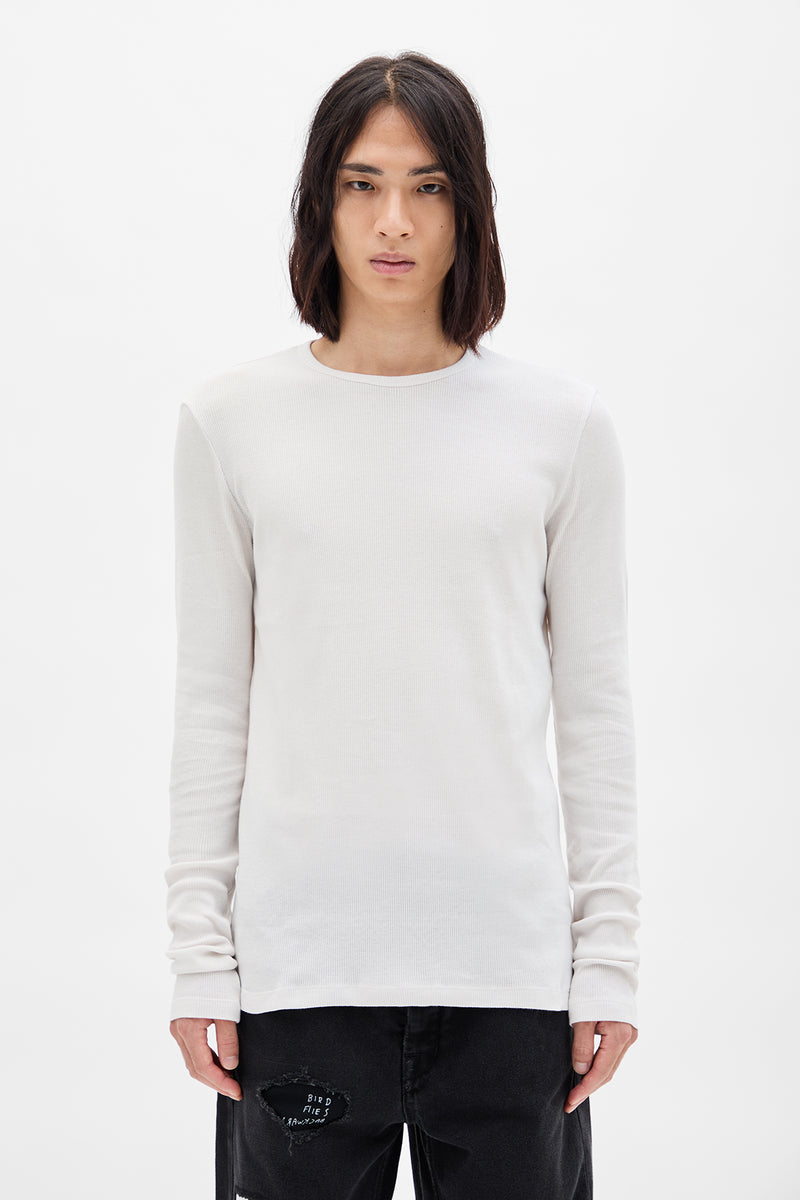 Greg Long Sleeve T-Shirt - Ivory - Round Neck - Long Sleeves - Slim Fit - 100% Cotton -Made in Italy