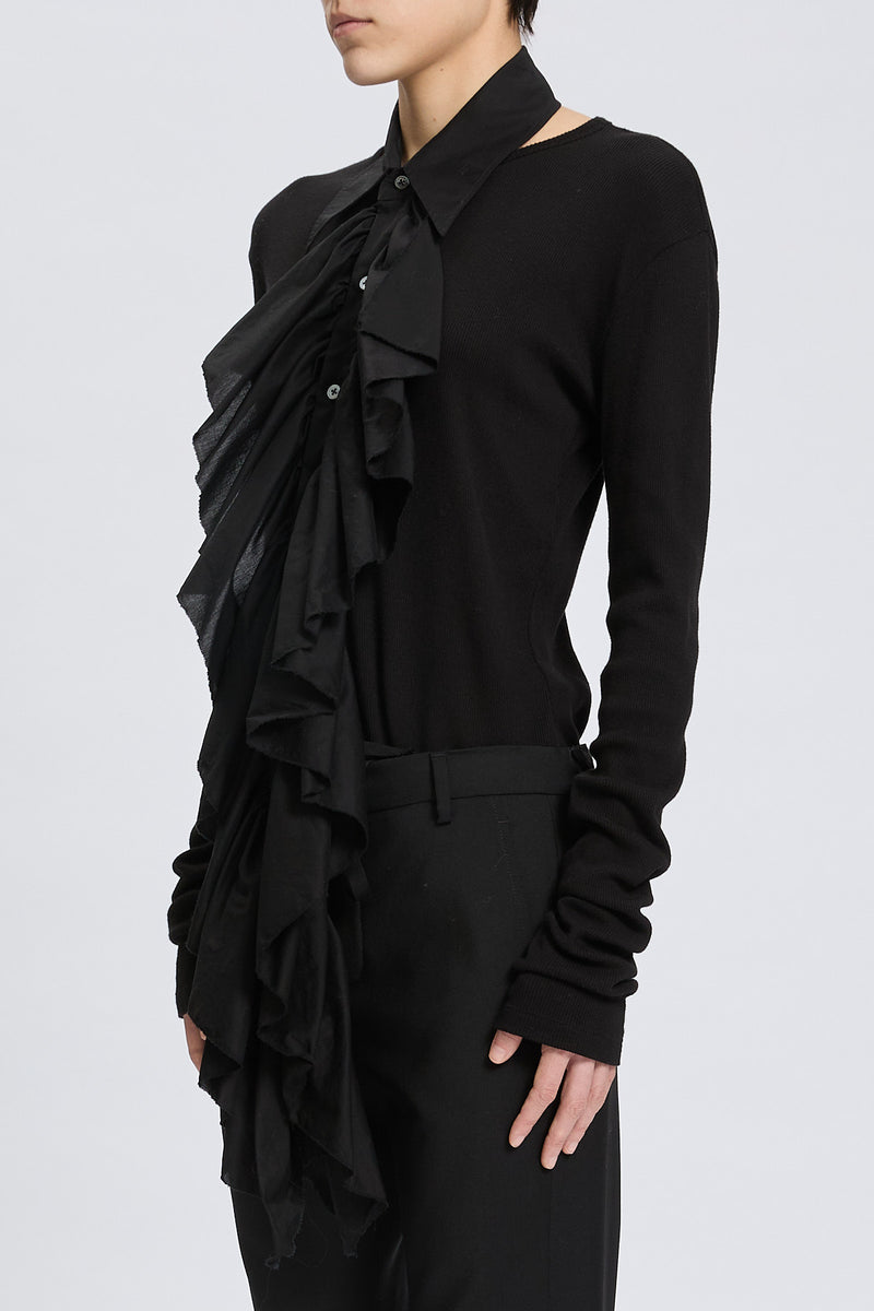 Beth Shirt Collar - Black - Raw Edge - Ruffle Light Cotton - 100% Cotton - Made in Italy