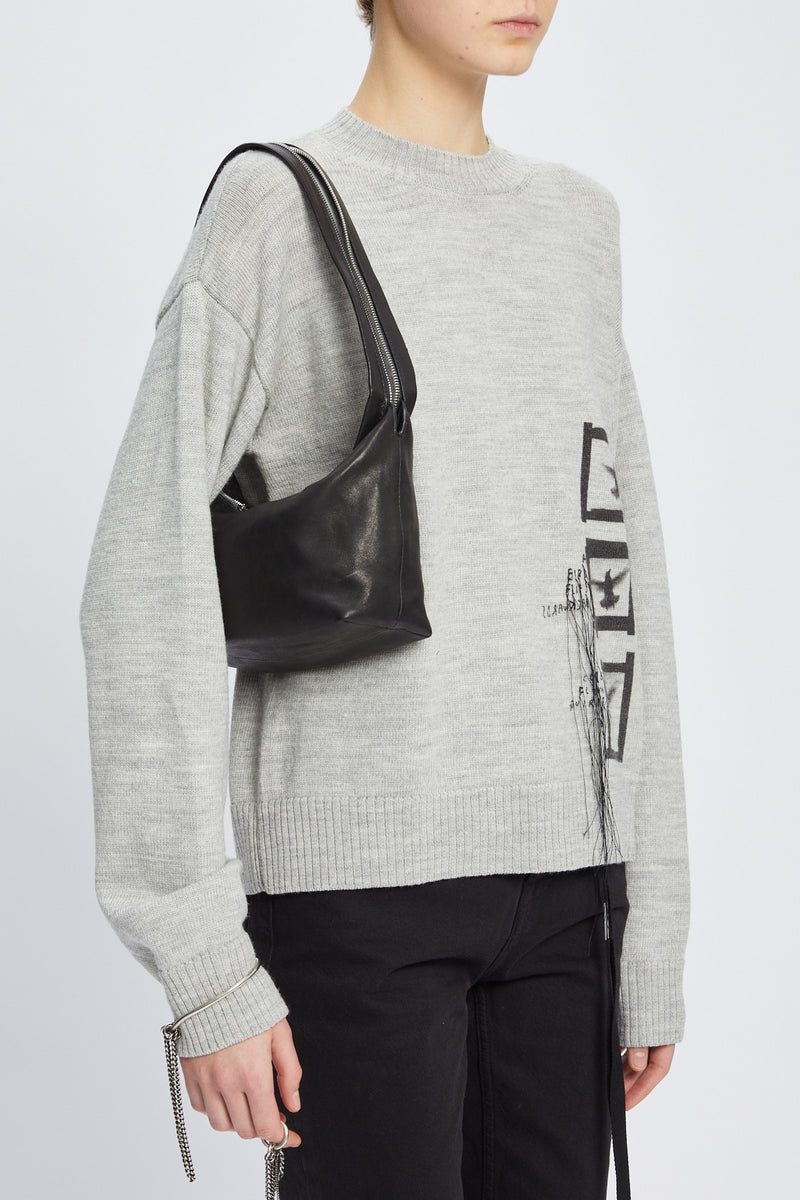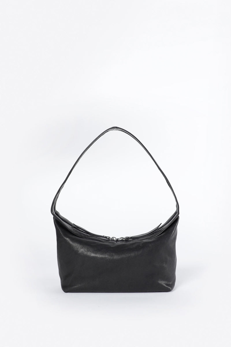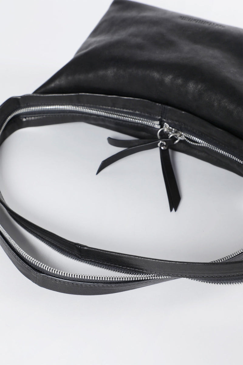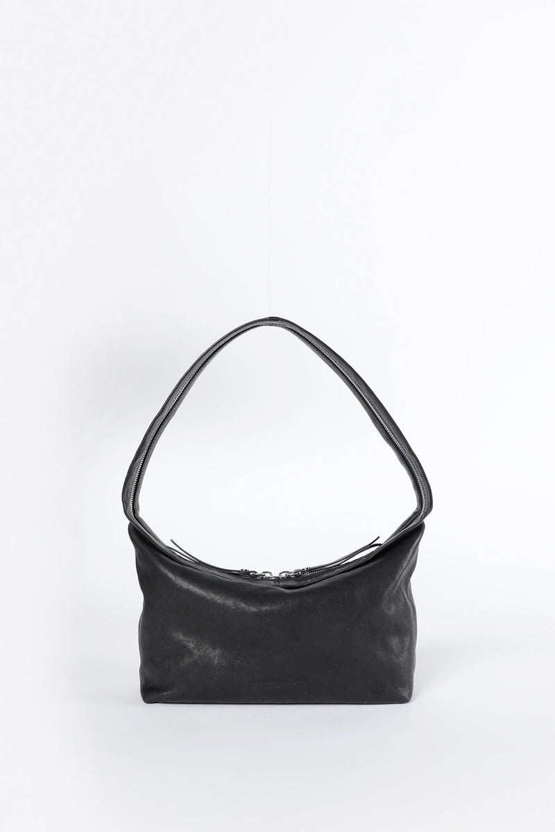 Lusi Bag - Black - Soft Grained Leather - Signature Metal Rivets - Front Embossed Logo - Shoulder Strap with Zipped Split - Zip Closure - 100% Lamb Leather - Made in Italy