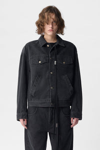 Marthe High Comfort Washed Denim Blouson - Faded Grey - Washed Denim Collar -Removable Signature Grosgrain Ribbon - Button Closure - Button Flap - Chest Pockets - Side Pockets - Buttoned Cuffs - 100% Cotton - Made in Italy