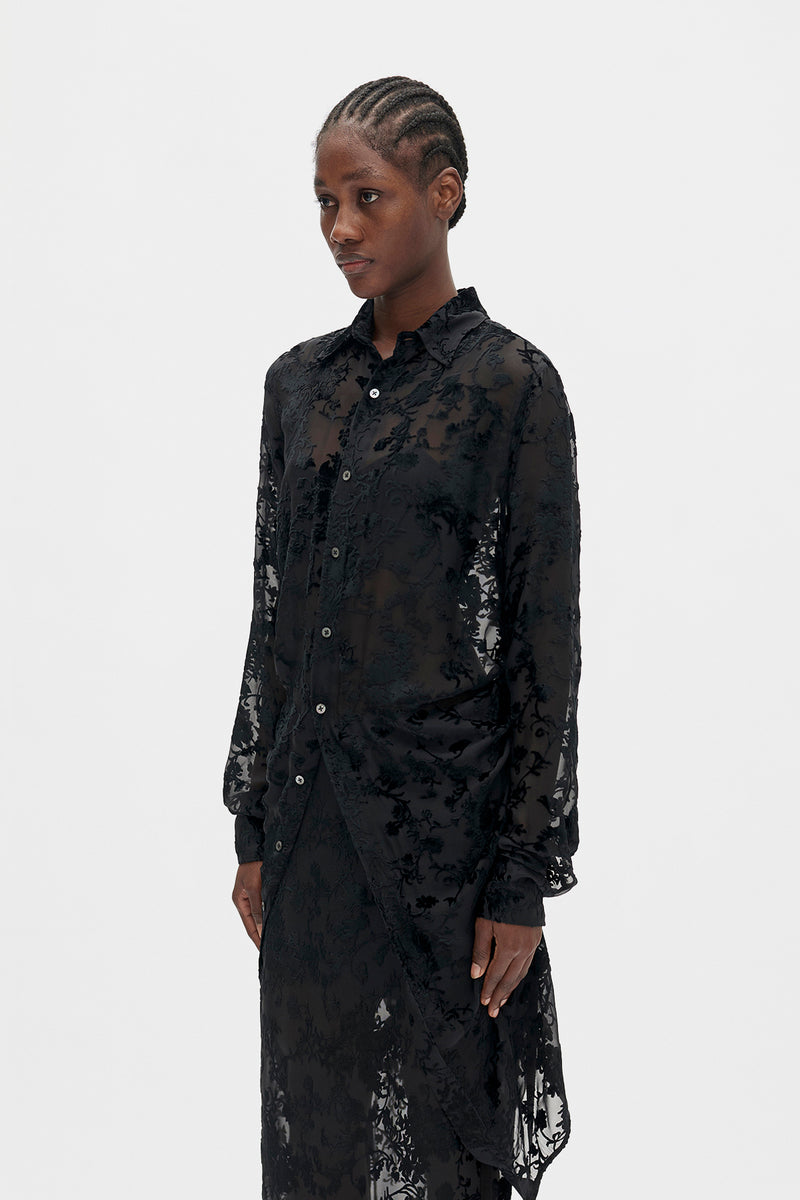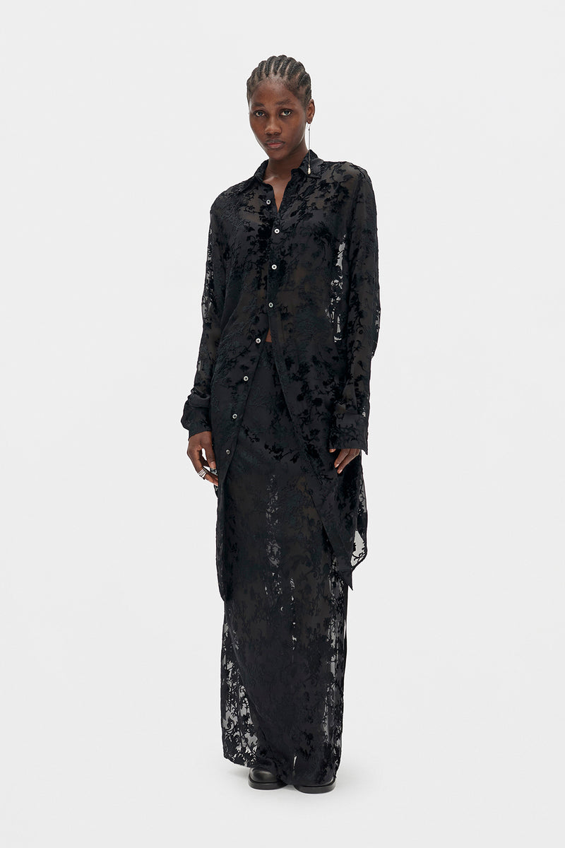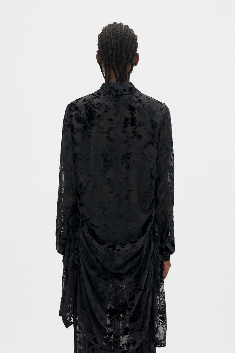 Rada High Comfort Dèvorè Shirt - black - Velvet Devoré - Classic Collar - Button Closure - Adjustable Drawstring Waist - Dropped Shoulders - Long Sleeves - Buttoned Cuffs - Elongated Hem - Relaxed Fit - 80% Viscose, 20% Silk - Made in Italy