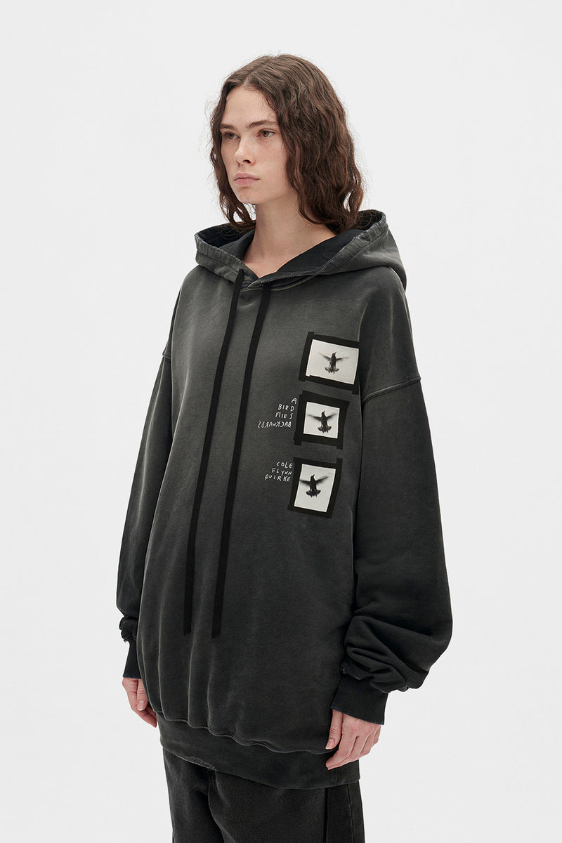 Anne Marie ''Doves'' High Comfort Hoodie - Black - Vintage Jersey - Distressed Details - Hood with Signature Grosgrain Drawstrings - Front ''Doves'' Printed Patches - Dropped Shoulders - Ribbed Hem and Cuffs - Loose Fit -100% Cotton - Made in Italy