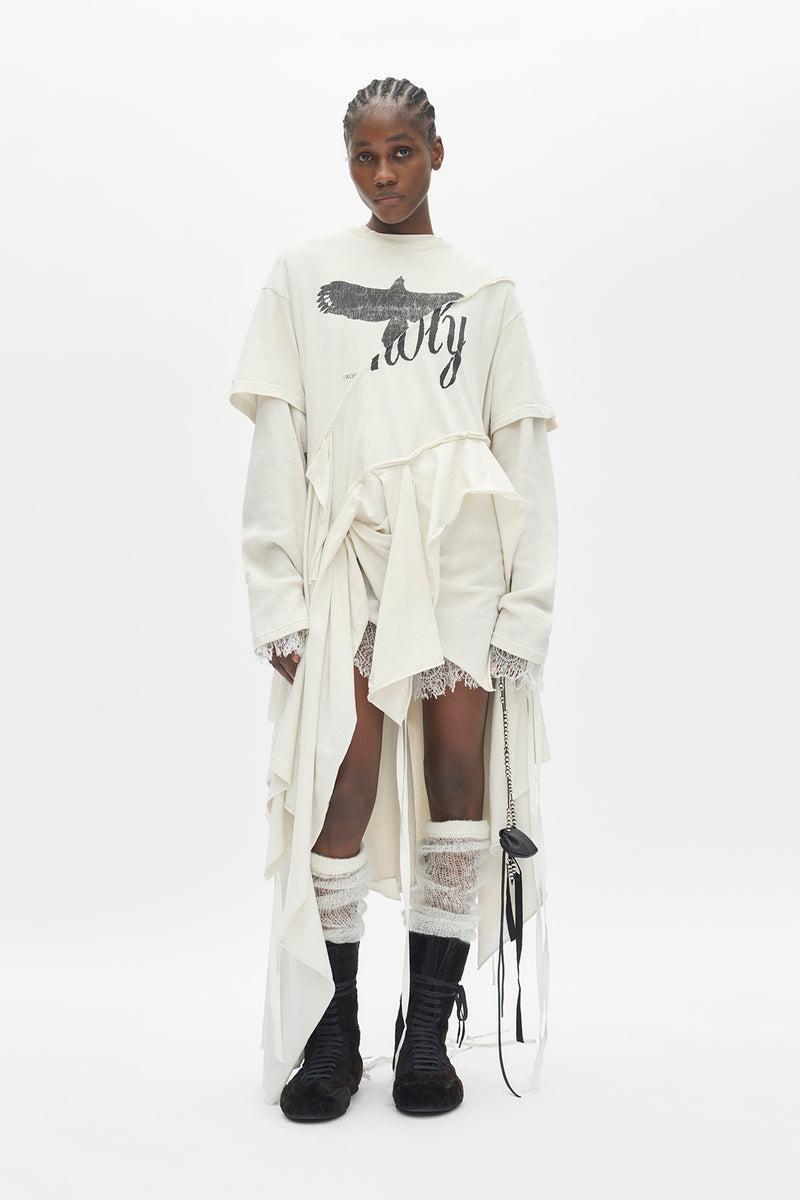 Nikita ''Eternal Eagle'' Long Sleeve T-Shirt - Ivory - Vintage Jersey - Round Neck - Cropped Hem - 100% Cotton - Made in Portugal