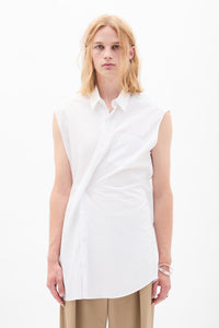Dorian 无袖高舒适长衬衫- 白色 - 超大码合身- 前侧口袋- 按钮闭合- 府绸- 100% 棉- Made in Italy